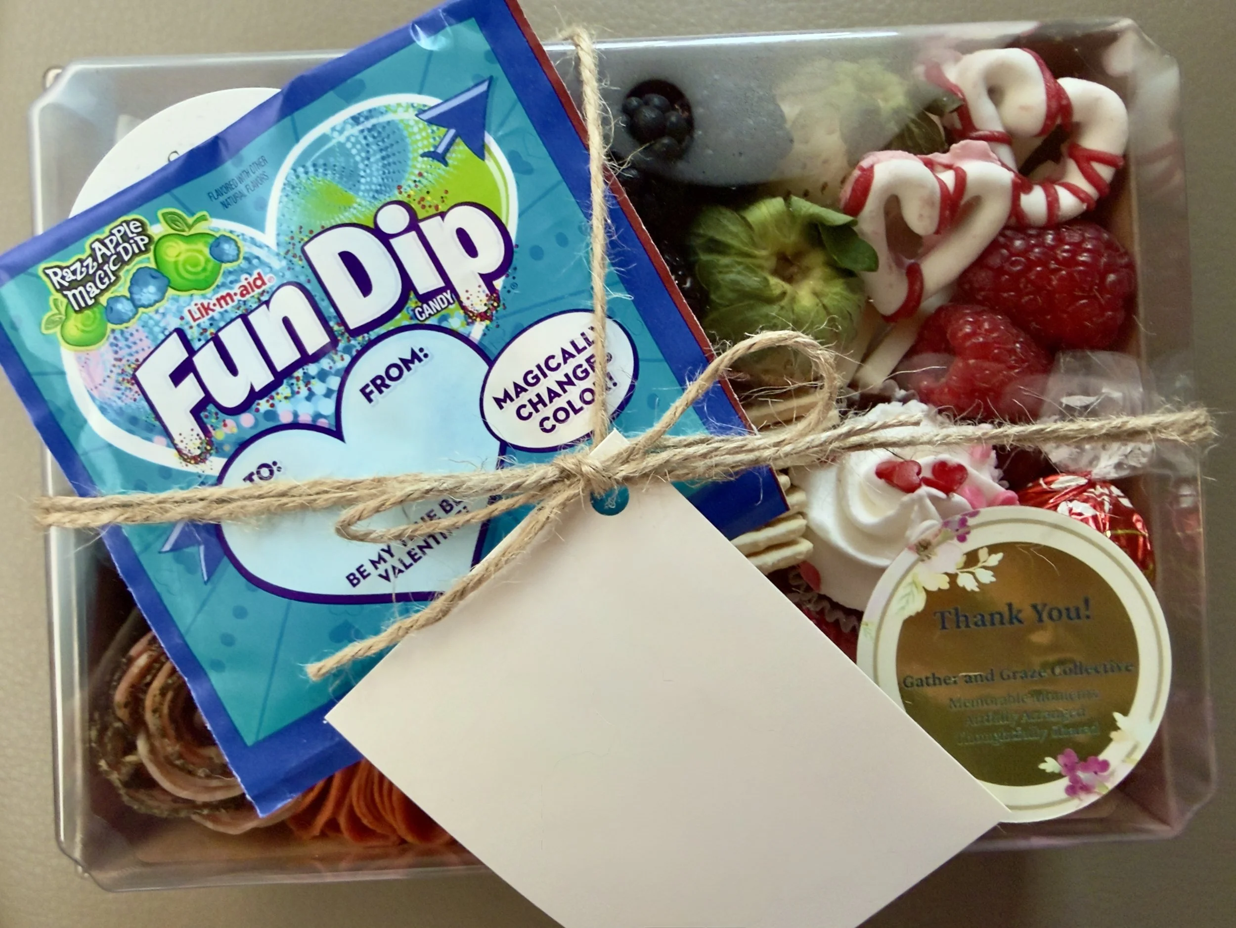 This Valentine’s Day, Gather and Graze Collective was honored to create charcuterie boxes and care packages for Auburn students, helping families send a little love from home. Each box was thoughtfully prepared with a delicious assortment of meats, cheeses, fruits, crackers, and sweet treats—designed to be both comforting and fun.